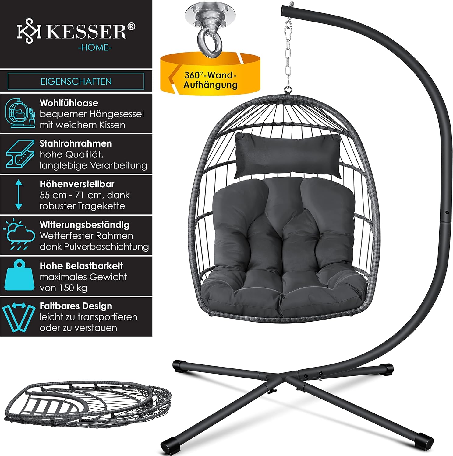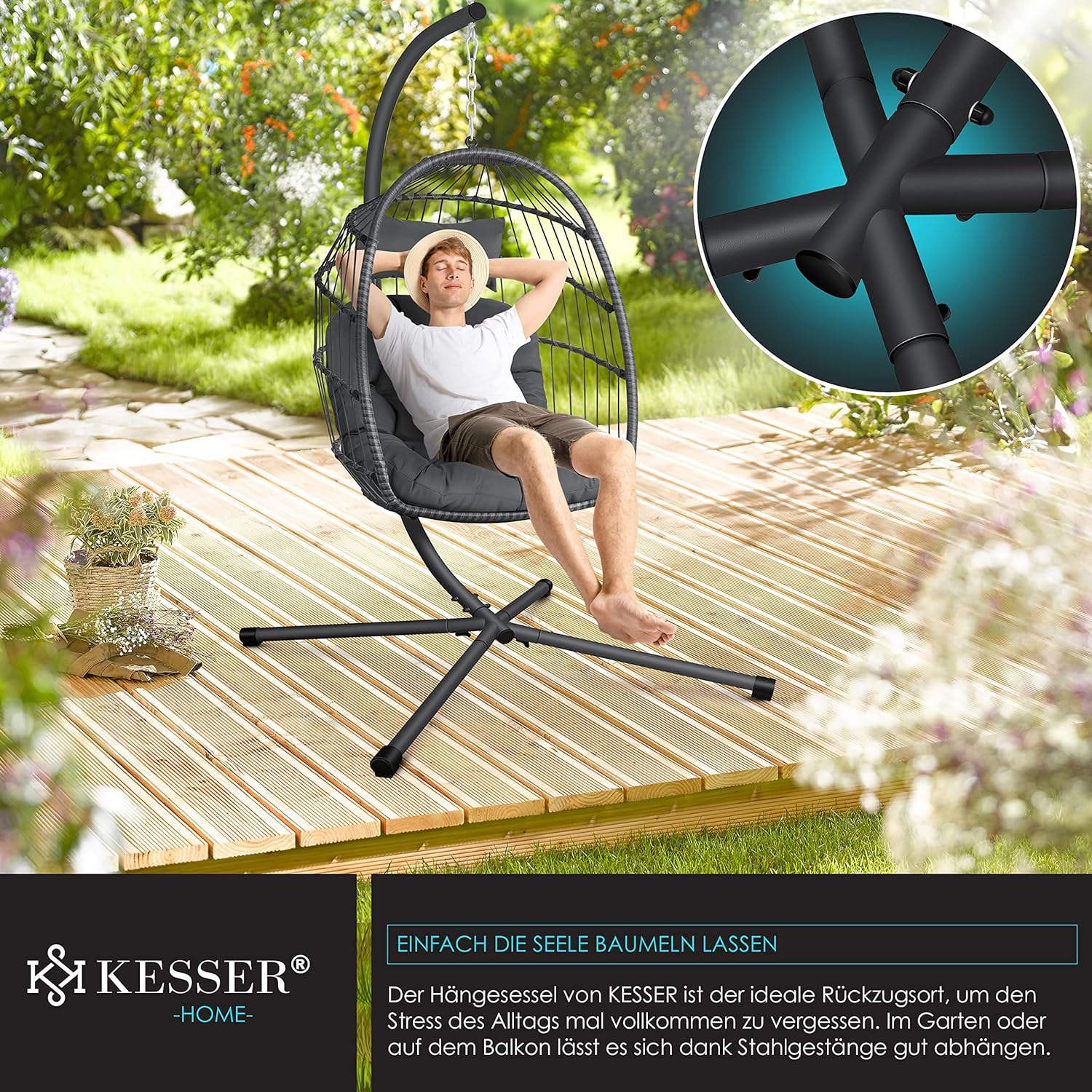 • Czysty relaks: Niezwykle wygodne obicie dostarczonych poduszek pozwala na jak najlepszy relaks w każdym miejscu do siedzenia. Swobodne kołysanie się wiszącego kosza pozwala na doskonały relaks, czytanie książki lub zasypianie dzięki kołyszącym się ruchom. Idealna alternatywa dla hamaka, idealnie dopasowuje się do pleców i gwarantuje wiele godzin relaksu.
