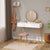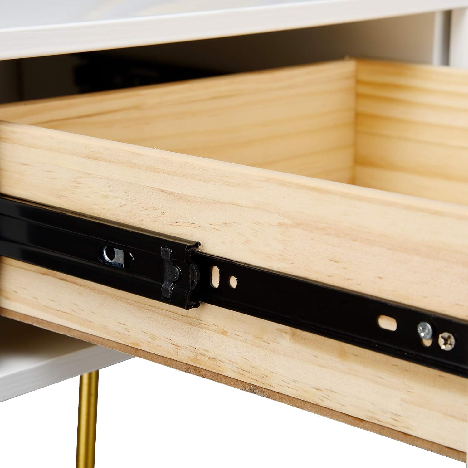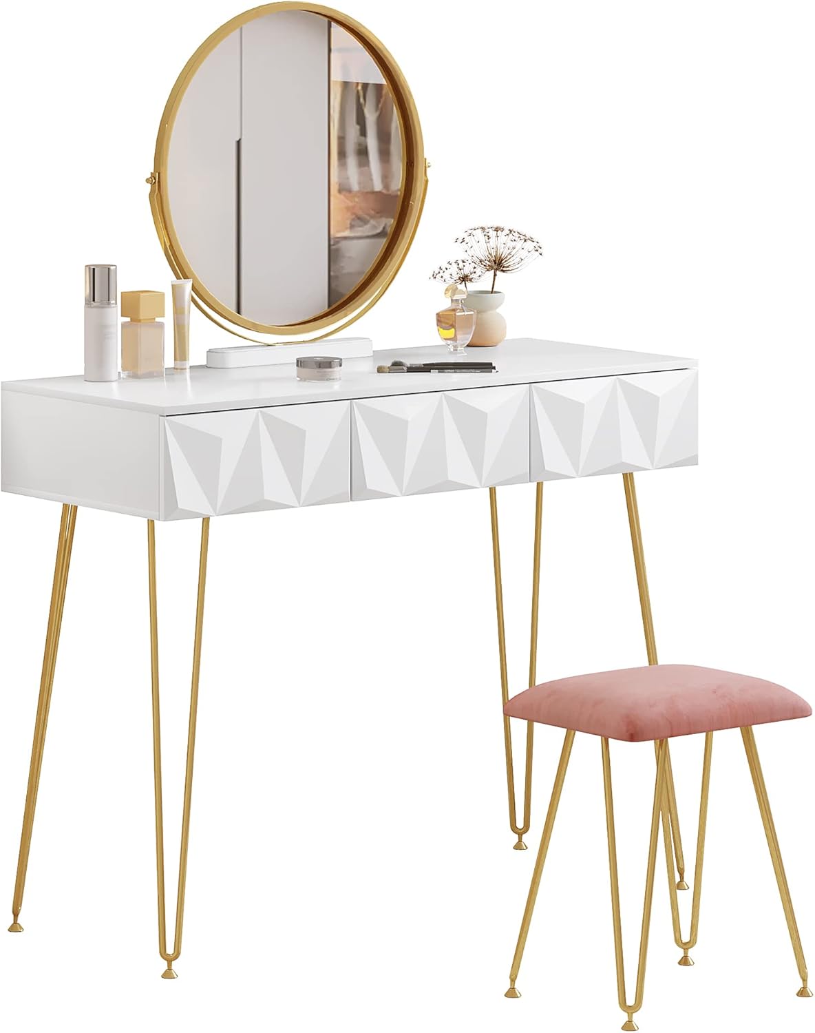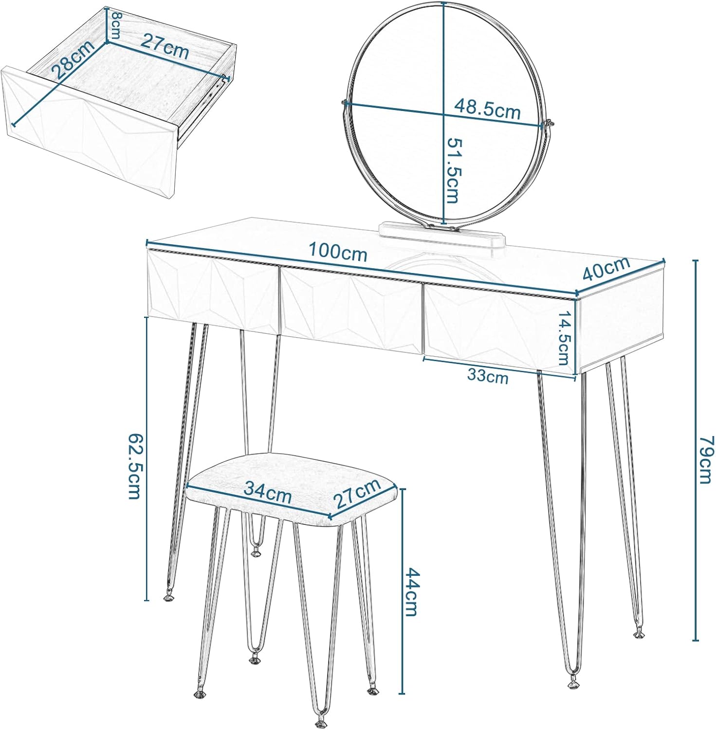- Kosmetyki łatwe do znalezienia: 3 duże szuflady i przestronny blat o wymiarach 100 x 40 cm ułatwiają przechowywanie kosmetyków do pielęgnacji skóry, biżuterii i akcesoriów do włosów, dzięki czemu pozostają uporządkowane i łatwe do znalezienia