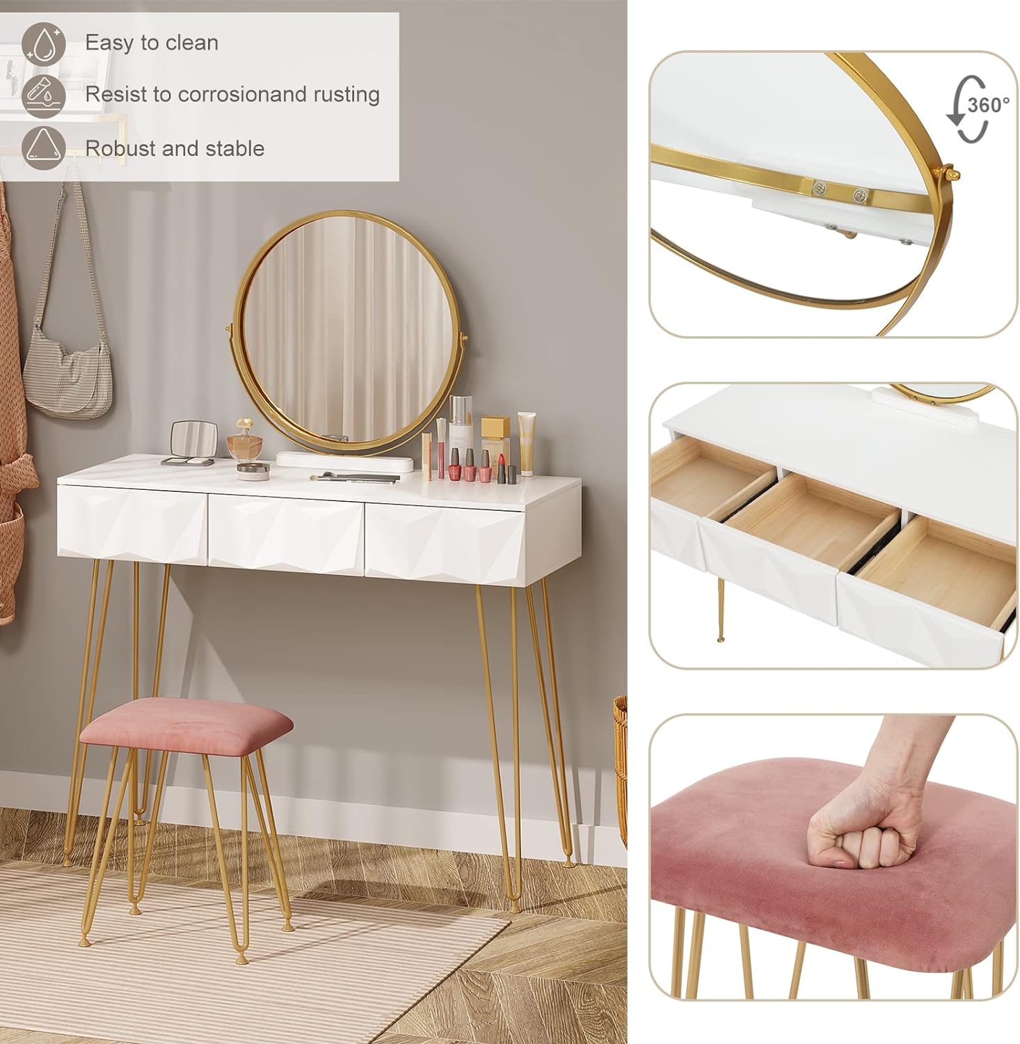 - Uderzający design: Prosty wygląd i połączenie bieli, złota i różu sprawiają, że zestaw do makijażu jest elegancki i stylowy. Złote nogi w kształcie spinki do włosów i wzór diamentowy na szufladach nadają zestawowi odrobinę luksusu