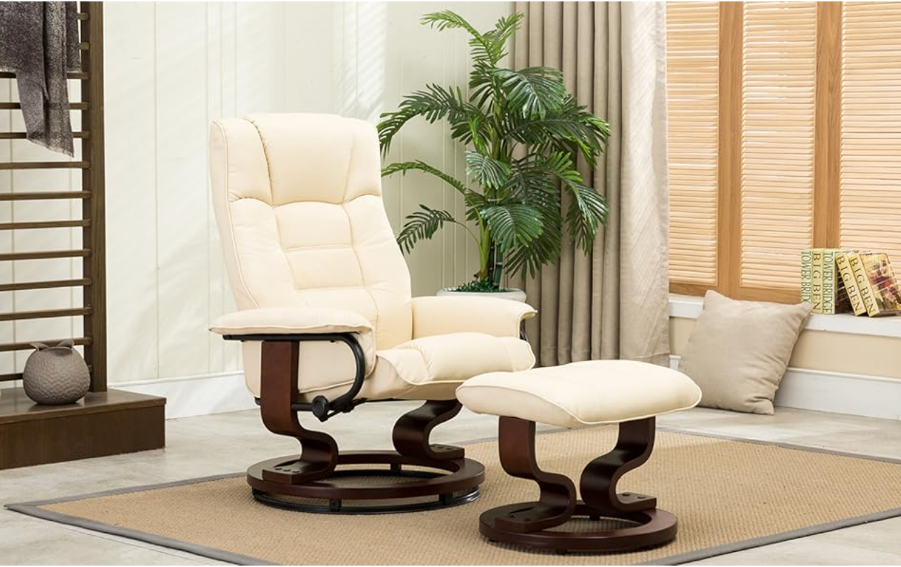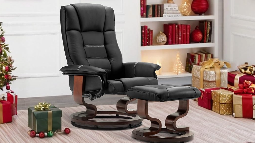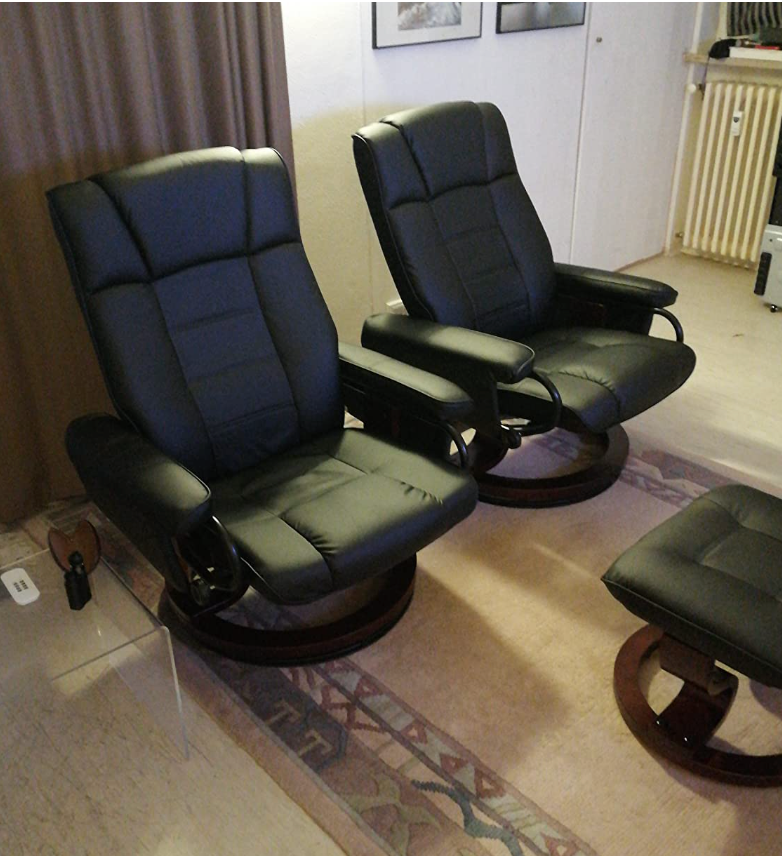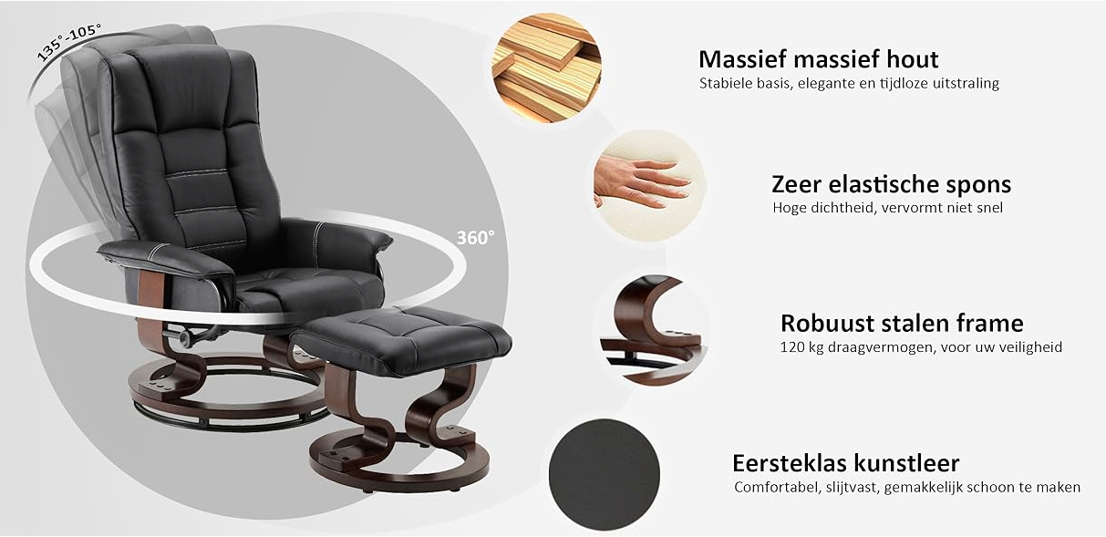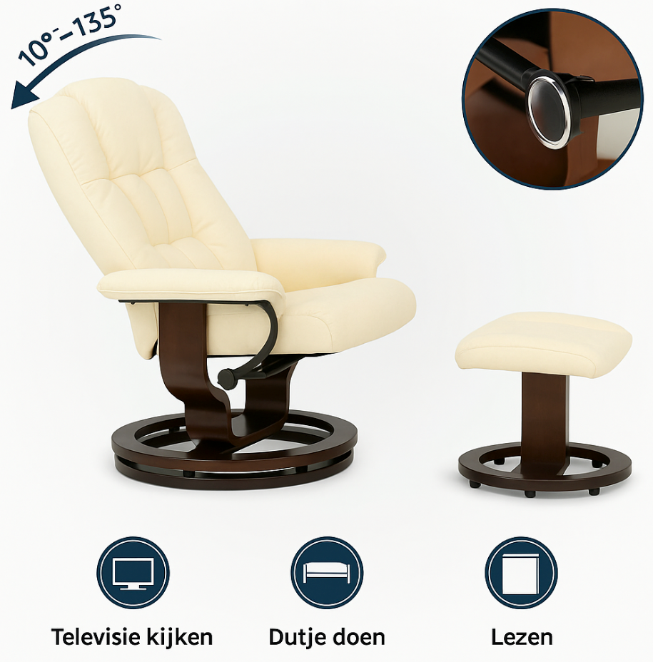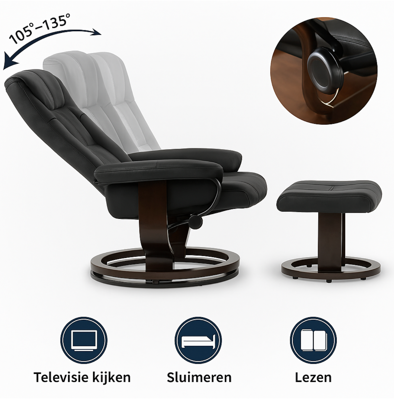 MCombo 9019 Fotel relaksacyjny ze stołkiem – obrotowy i regulowany o 360° – sztuczna skóra