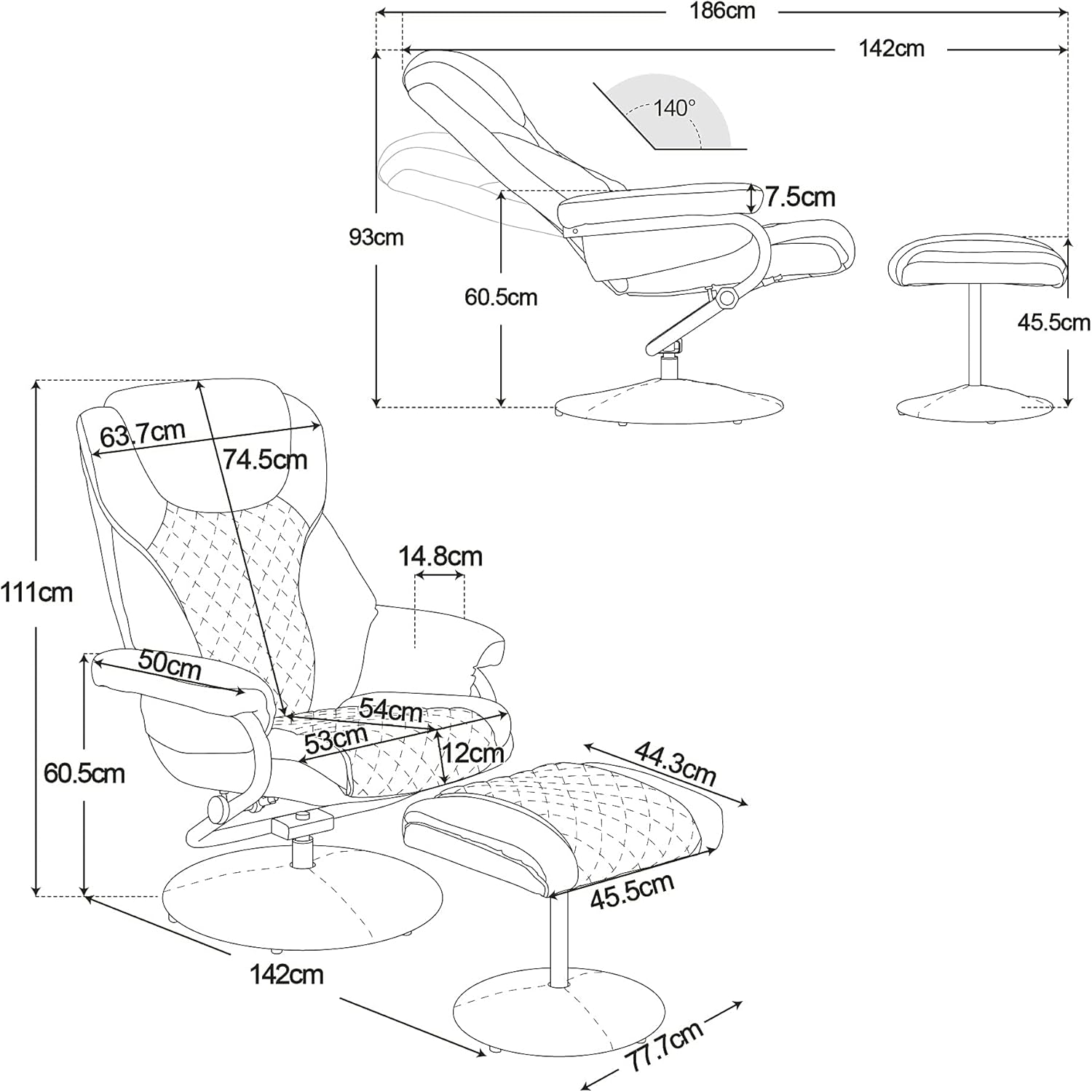 - Modern design --- Een geselecteerd synthetisch leer met handgenaaid diamantborduurwerk op de rugleuningen, zitting en voetenbank onderscheidt de stoel van andere tv-fauteuils. Zelfs de ronde basis is bekleed met hoogwaardig synthetisch leer. De elegante en moderne uitstraling maakt deze relaxfauteuil geschikt voor verschillende woonstijlen.