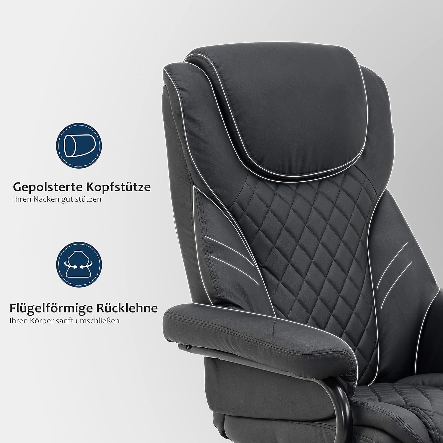 - Ergonomische vorm --- De met meerdere verdiepingen beklede hoofdsteun is bijzonder goed ter bescherming van de nek. De vleugelvormige rugleuning en zitkussens omsluiten je lichaam zacht en verdelen de druk van rug en heupen om een uitstekend zitresultaat te garanderen. De brede armleuningen en poef zorgen voor extra ondersteuning van je ledematen.