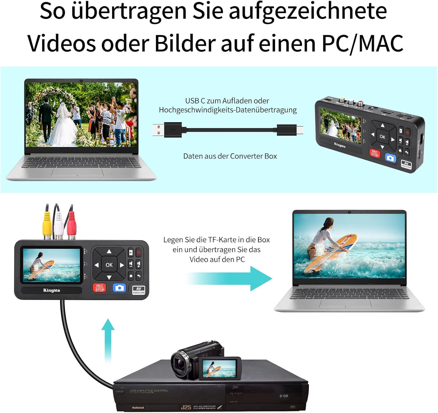 + Speel VHS-banden af: Onze Kingma VHS Videorecorder is compatibel met VHS-banden, zodat u uw oude videocollectie kunt bekijken.
